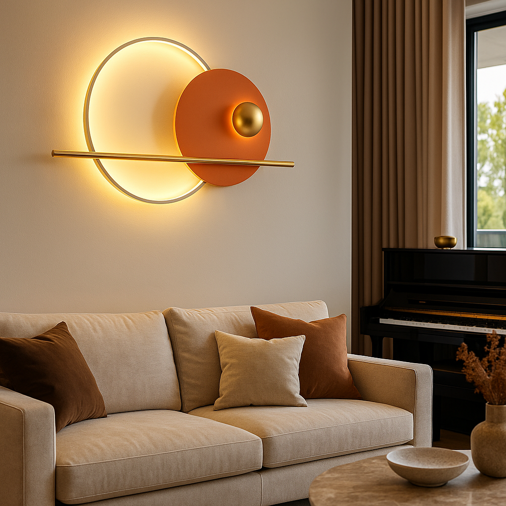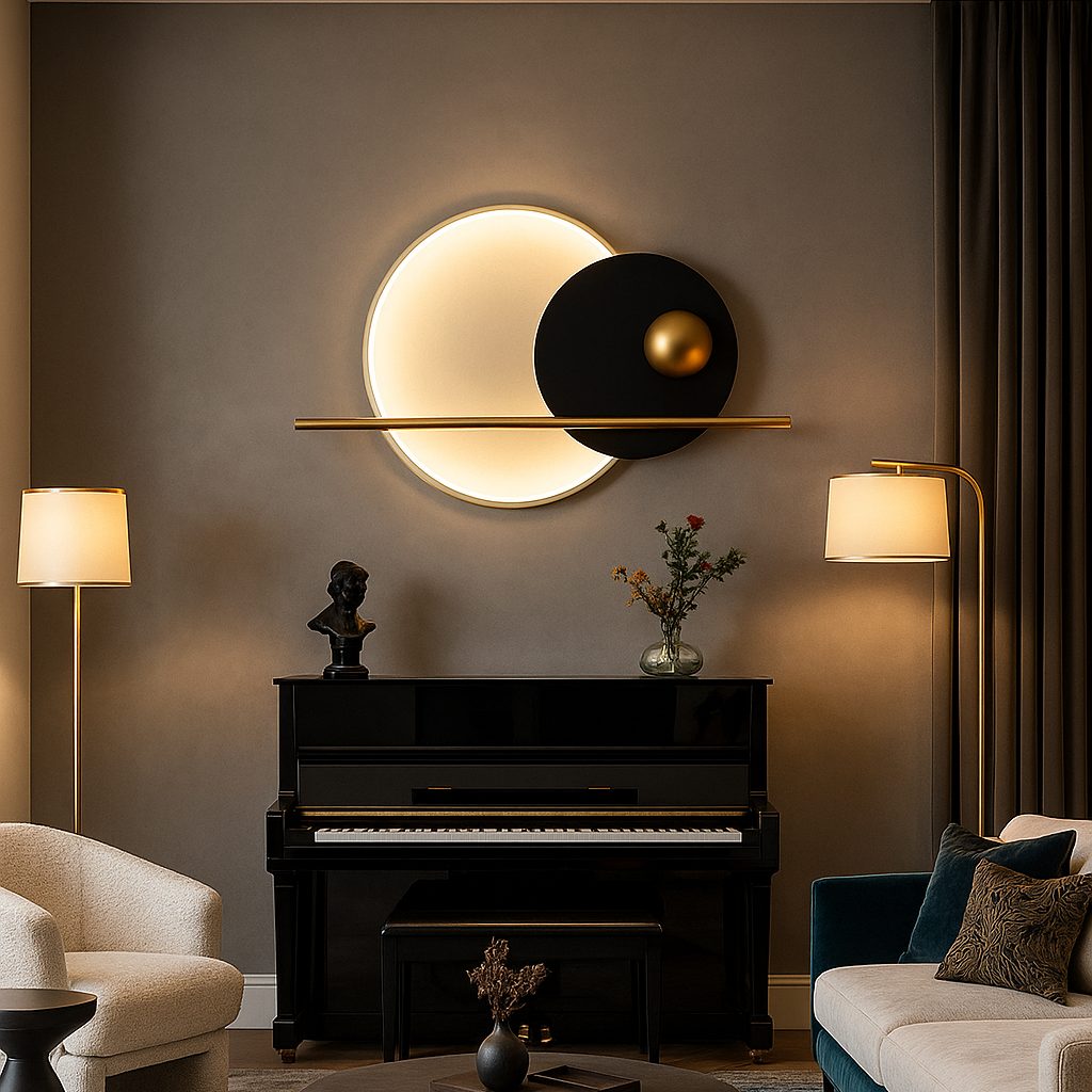 Its dual-form design captures the moment of eclipse — a smaller metallic disc intersecting a radiant halo — delivering harmony between geometry, shadow, and light. Perfect for accenting bedrooms, hallways, or statement walls.